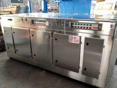 采用原有的UV光氧和光觸媒效應上加入均流板產(chǎn)生五級凈化效果,高效除惡臭,具有無需添加任何物質(zhì),適應性強,運行成本低,無需預處理等優(yōu)勢的一款產(chǎn)品,用于煉油廠、橡膠廠、化工廠、制藥廠、污水處理廠、垃圾轉(zhuǎn)運站等惡臭氣體的脫臭凈化處理。 2、有機廢氣凈化效率:≥95%; 3、設備阻力:≤300Pa; 4、電源電壓:380V,50HZ 5、電功率:500W-30000W 6、備噪聲:≤45Db 2、利用高能高臭氧UV紫外線光束分解空氣中的氧分子產(chǎn)生游離氧,即活性氧,因游離氧所攜正負電子不平衡所以需與氧分子結合,進而產(chǎn)生臭氧。 3、惡臭氣體利用排風設備輸入到本凈化設備后,凈化設備運用高能C波光束及臭氧對惡臭氣體進行協(xié)同分解氧化反應,使惡臭氣體物質(zhì)其降解轉(zhuǎn)化成低分子化合物、水和二氧化碳,再通過排風管道排出室外。 4、利用高能UV光束裂解惡臭氣體中細菌的分子鍵,破壞細菌的核酸(DNA),再通過臭氧進行氧化反應,徹底達到脫臭及殺滅細菌的目的。 |